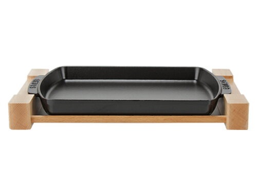 【GWもあす楽】ストウブ 鍋 Staub ステーキプレート 1205223/40509-523-0 ブラック PALTO SERVICIO RECTANGULAR CON BASE DE MADERA Plato rectangular base madera Black IH対応 [glv15] あす楽